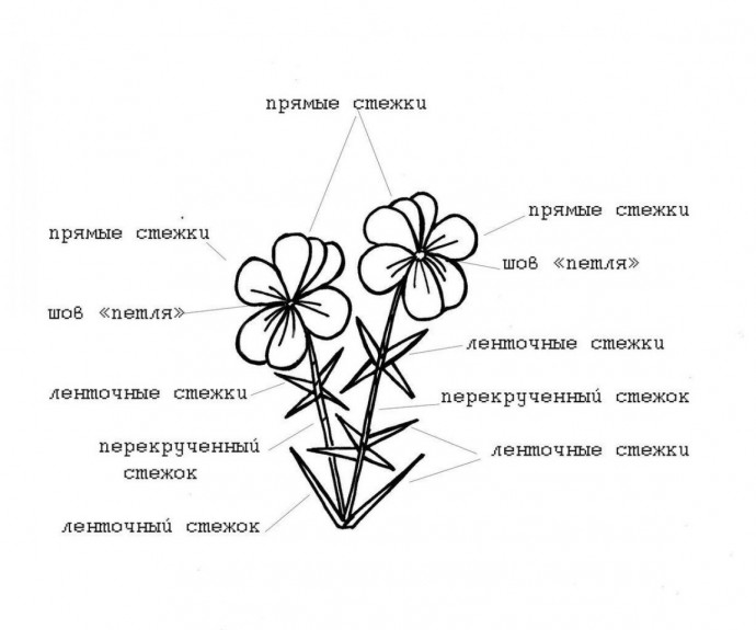 Вышиваем фиалку атласными лентами: мастер-класс