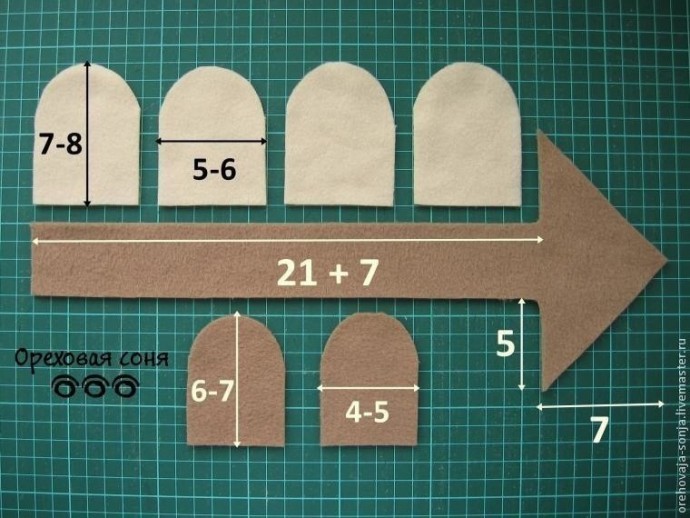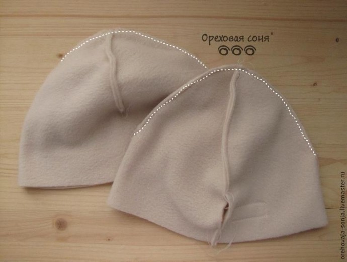 Описание схемыЧтобы шапочка получилась теплой вязала в 2 нити (акриловая пряжа + акрил с мохером).Начинала с ушек. Для первого ушка набрала 22 петли, провязав по схеме 12 рядов, ос...