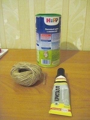 Мельница из бечевки и баночки кофе