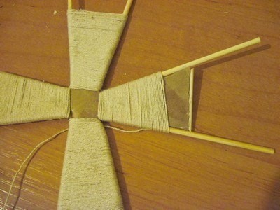 Мельница создается из тетрапака, картона, шпагата и зерен кофе.