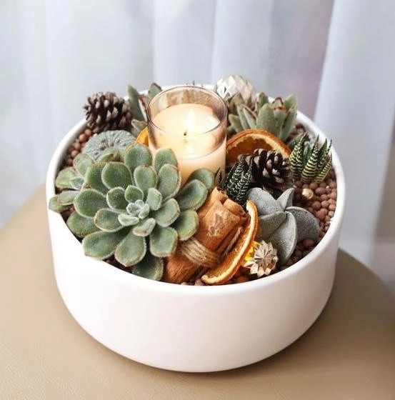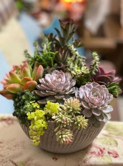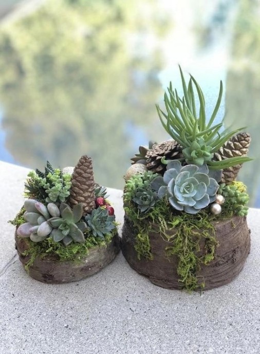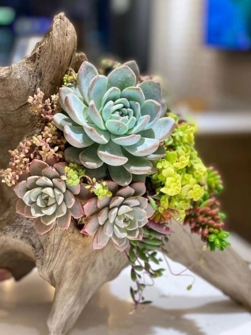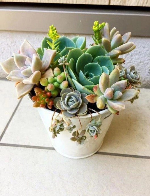 Цветочные композиции с суккулентами можно создавать в самых разных ёмкостях.