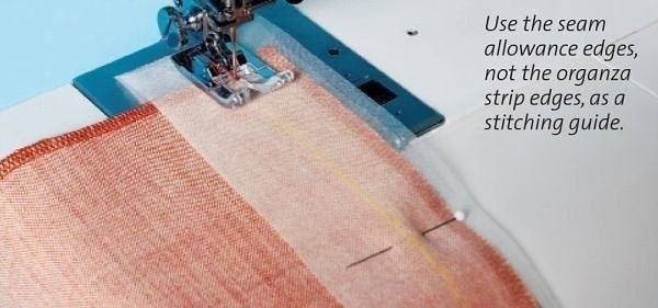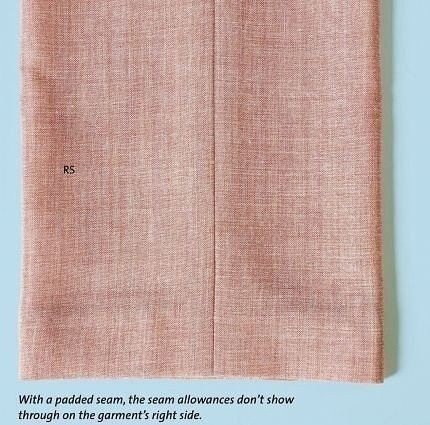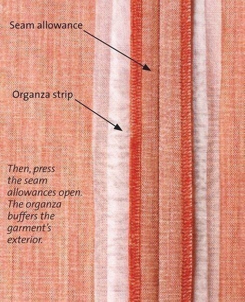 Чтобы припуски на швы не пропечатывались на тонкой шерсти, пришейте полоски ткани по обе стороны от шва стачивания.