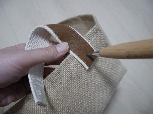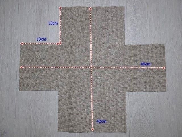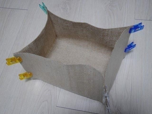Корзинка-органайзер создается из плотной ткани типа брезента.