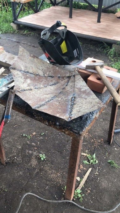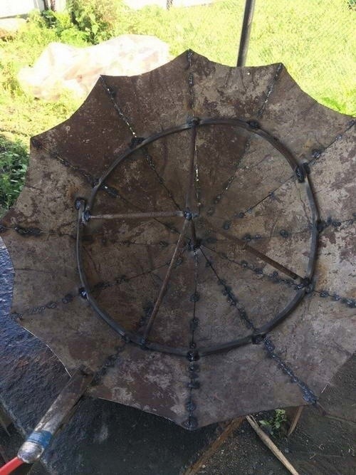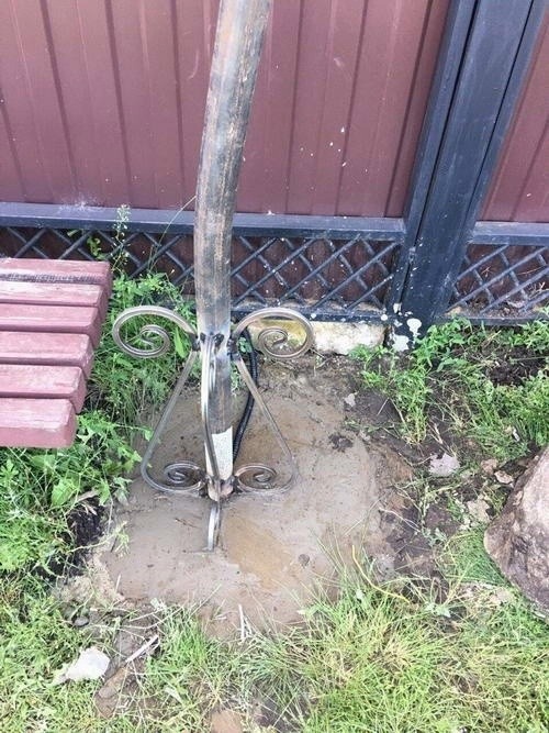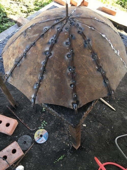 "Живой" уличный фонарь с зонтом может стать украшением дачи, если найти хорошего сварщика и заказать ему такую работу.