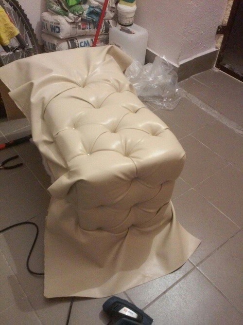Пуфик в каретной стяжке с местом для хранения своими руками