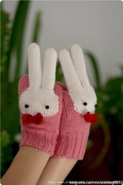 Вяжем перчатки с зайчиками