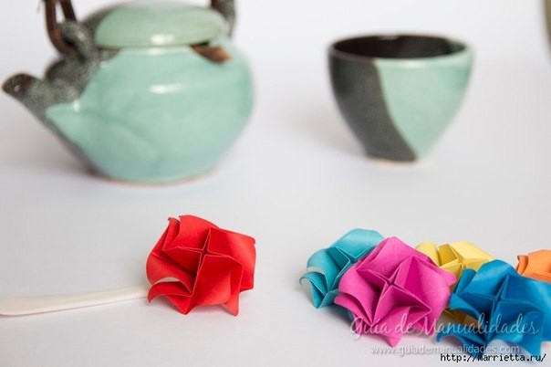 Нежные бумажные розочки в технике оригами подойдут для декорирования праздничного стола.