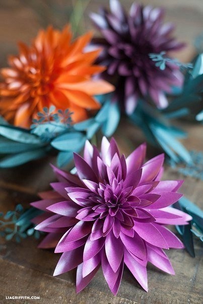 Георгины из бумаги: мастер-классШаблоны для распечатки прилагаются.