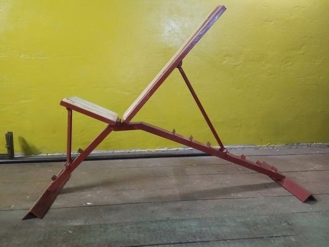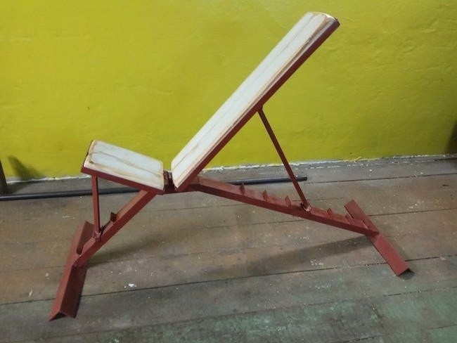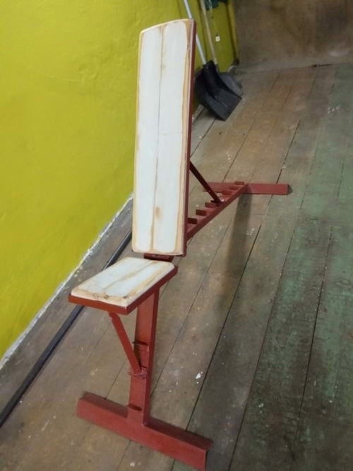 Самодельная скамья для жимаЕсли готовые спортивные снаряды пугают своими ценами, то сделайте скамью для жима своими руками из дерева.Будет к тому же экологично и долговечно.