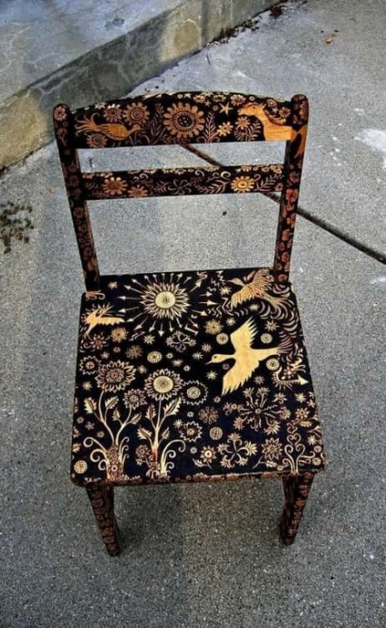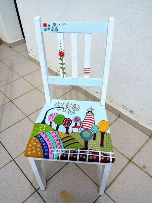 Старым стульям такая роспись дарит вторую жизнь, а новые стулья делает самобытнее.