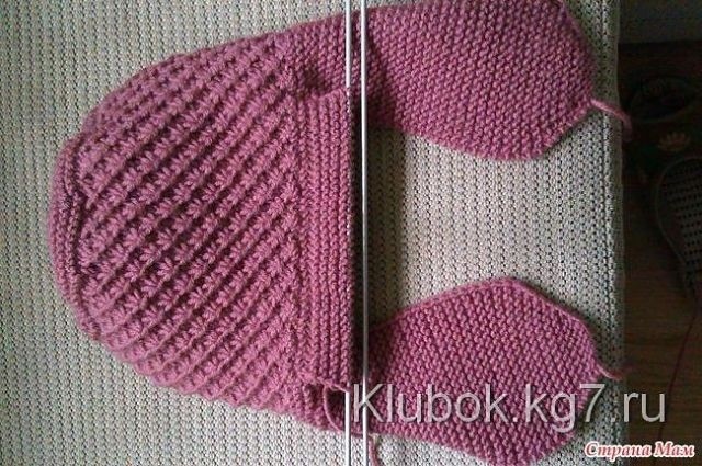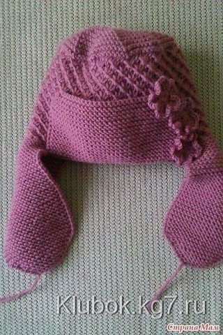 Теперь вяжем отворот — набираем по низу передней части нашей ушанки 35 петелек и вяжем платочной вязкой на нужную длину (по ходу дела примеряем на себя любимую).