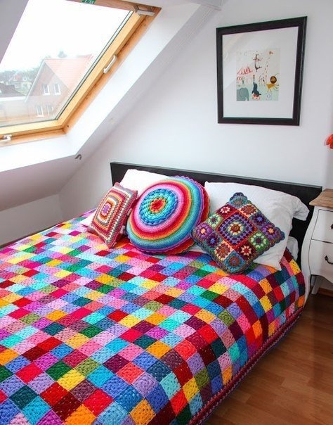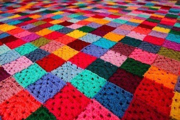Очень красивый плед,яркий,сочный! Квадратики связать не проблема,но вот собрать их вместе. Как сшить красиво,как обвязать красиво?
