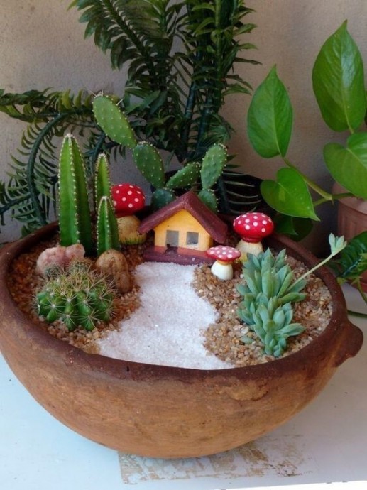 Маленькие сказочные миры в цветочных горшках