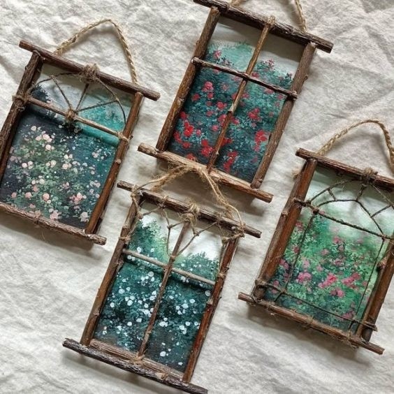 Вы можете брать прямоугольники обычного или матового стекла, расписывать причудливыми узорами - и после этого создавать декор, добавляя раму и ставни.