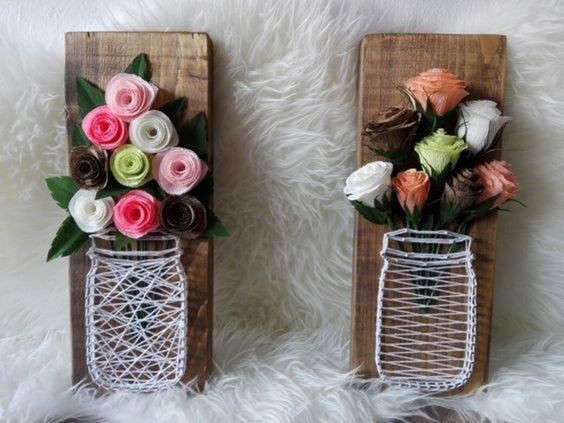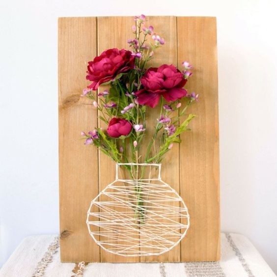 Панно с вазами выполняется в технике вышивки шнуром по гвоздям или стринг-арт.