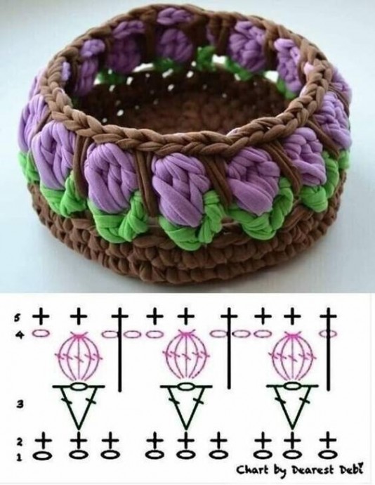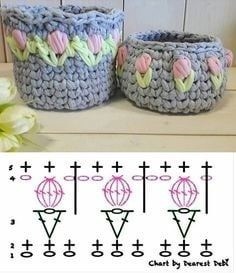 Цветочные корзинки, связанные крючком, можно использовать как органайзеры для мелочей, подчеркивающие тонкий вкус и золотые ручки хозяйки дома.