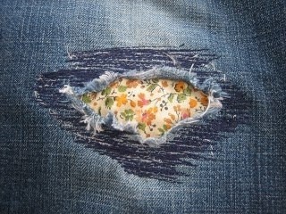 Заодно делаем дырки на джинсах, чтобы было, где ставить заплатки.