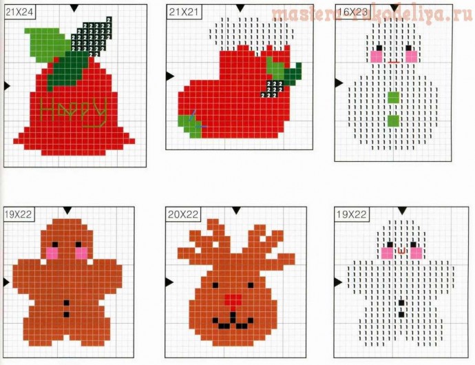 Предлагаем вам схемы вышивки новогодних игрушек. Вышивки очень маленькие и до нового года можно успеть сделать много таких игрушек. Как раз получится оригинальных комплект из вышитых игрушек на елку. Можно украсить свою елочку, а можно красиво упаковать и подарить кому-нибудь на Новый год. Для вышивки можно использовать обычную канву, но лучше все же пластиковую .