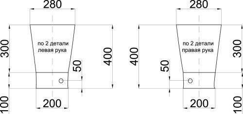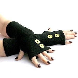 И так, на бумаге строим выкройку митенок. Откладываем ½ обхвата снятых размеров на расстоянии друг от друга 35-40 см. Сужаем выкройку чуть-чуть в месте запястья. Нижняя деталь должна быть на 2-3 см меньше, чем верхняя. Вырезаем по выкройке митенок по две детали из каждой ткани. Складываем их лицевыми сторонами. Прошиваем. Выворачиваем. Тканью, которая была «нижней», обрабатывает верх и низ митенок, предварительно вырезав полоску 1,5-2 см (если не махрится, а если ткань махрится – сделаете кант пошире). Последний штрих – дырочка для большого пальчика. И вот они – наши митенки! Выкройка митенок была очень простой, поэтому вперед, обновим же аксессуары к зимнему гардеробу