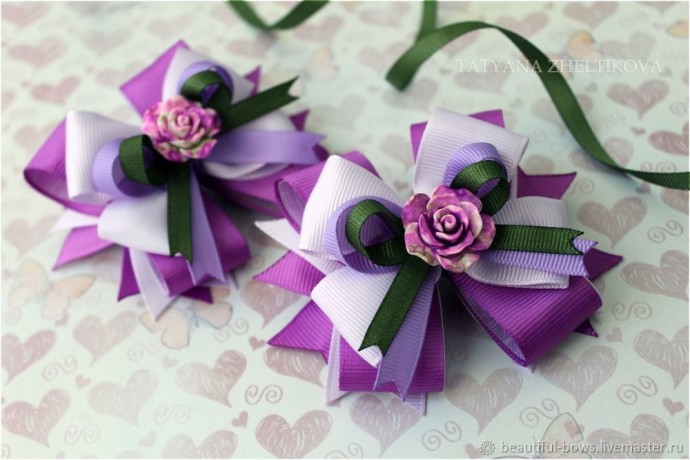 Бантики с розочками по центру достойны украсить любую резиночку для волос.