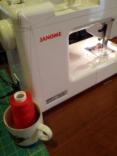 Расположение больших катушек с нитками на неприспособленных для этого швейных машинках
