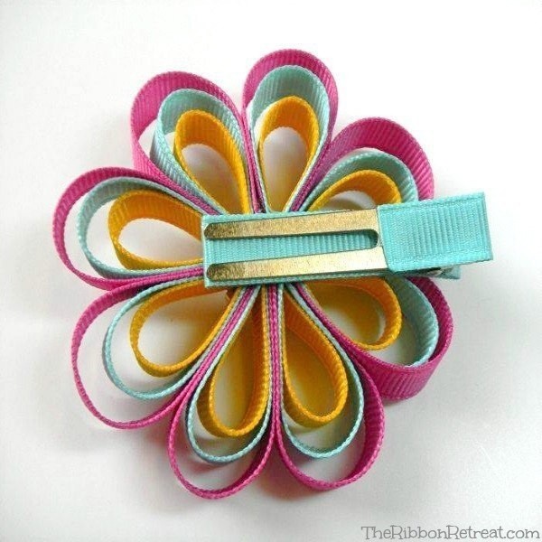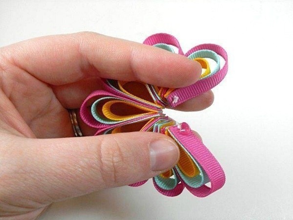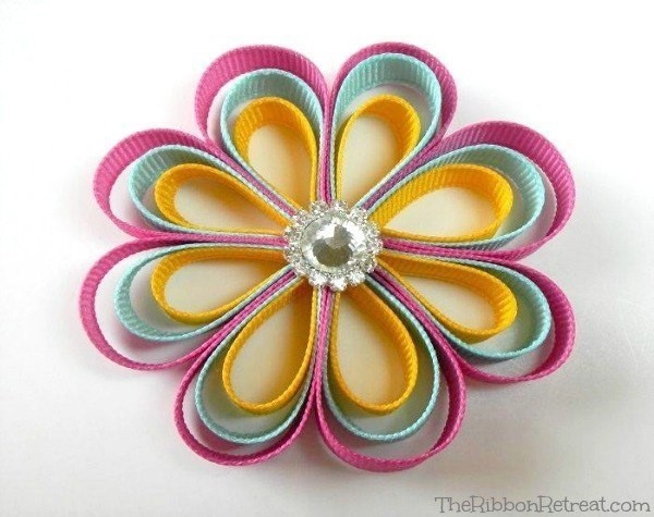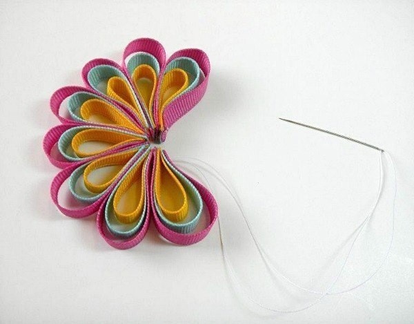 Цветочек из лентЦветочек из лент может быть использован для украшения заколки, как брошка и в любых других вариантах, которые вам больше по душе.