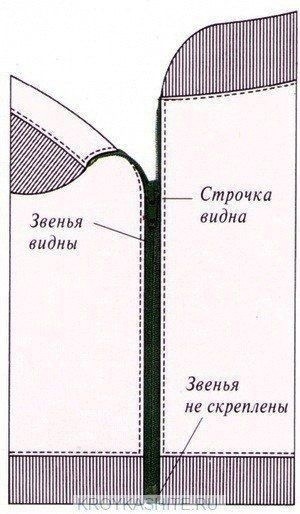Втачивание молнии на детали без шва Звенья молнии в этом случае остаются на виду.