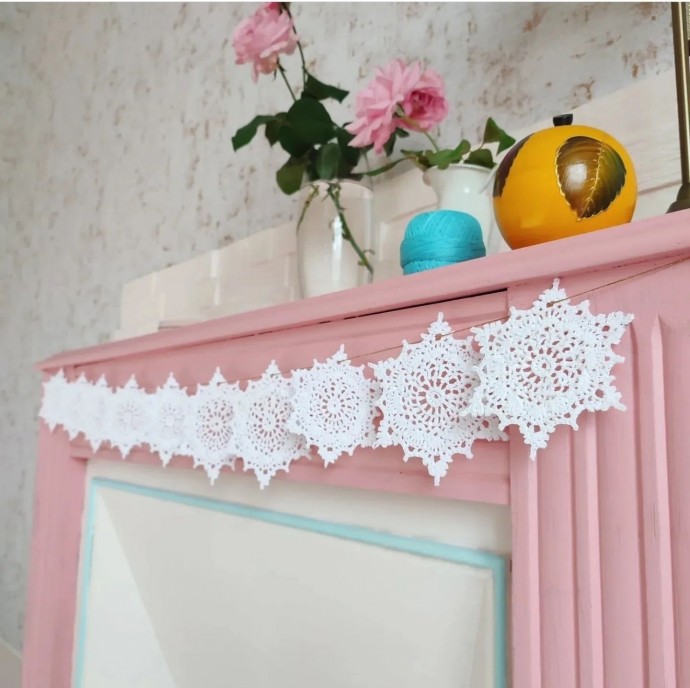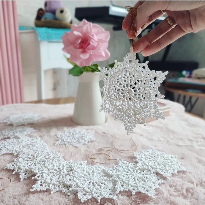 Схемы снежинок помогут обвязать весь дом, создав ощущение праздника на каждом шагу.