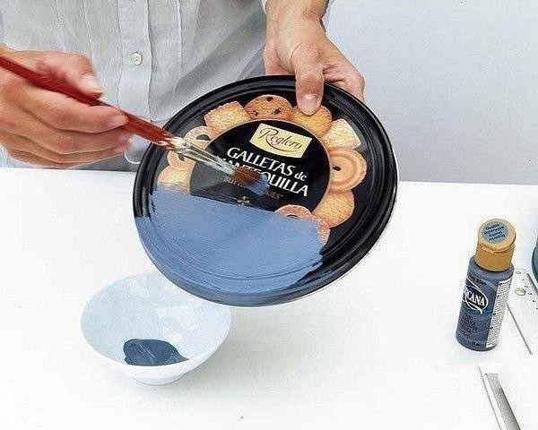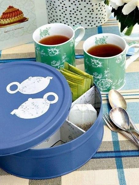 Подойдет любая жестяная коробка от печенья, чтобы преобразить ее в чайную.