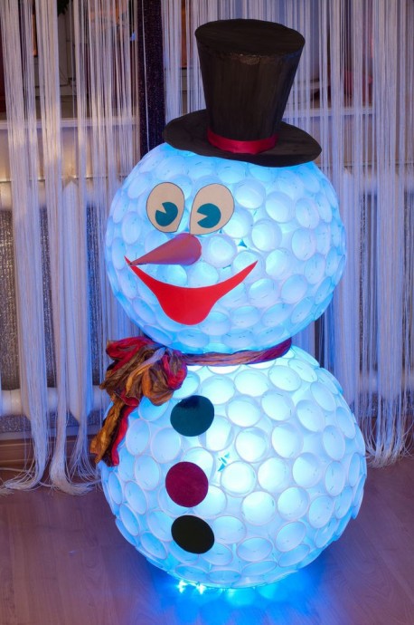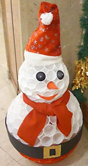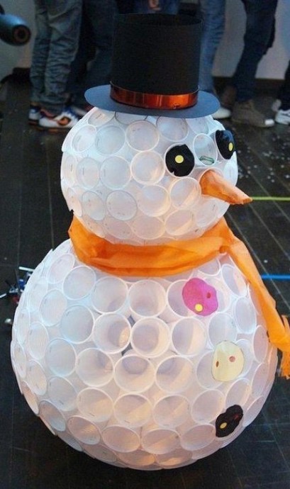 Снеговик из пластиковых стаканчиков