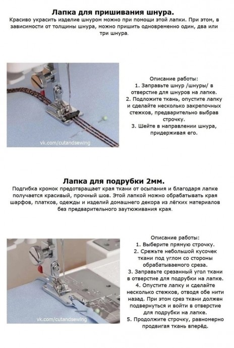 Все виды швов и строчек можно выполнять легче и проще, если использовать для этого правильные лапки.