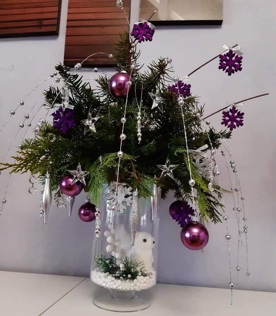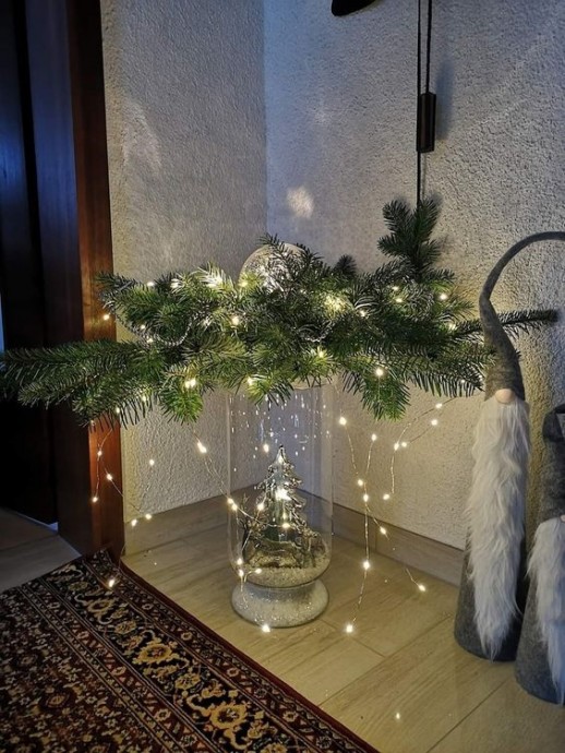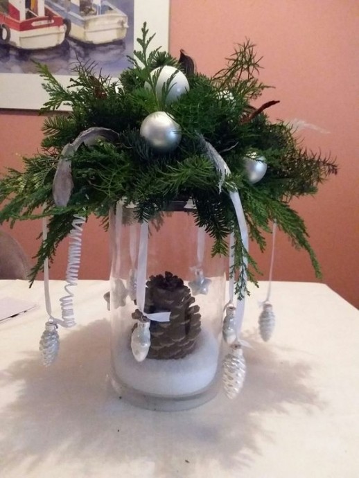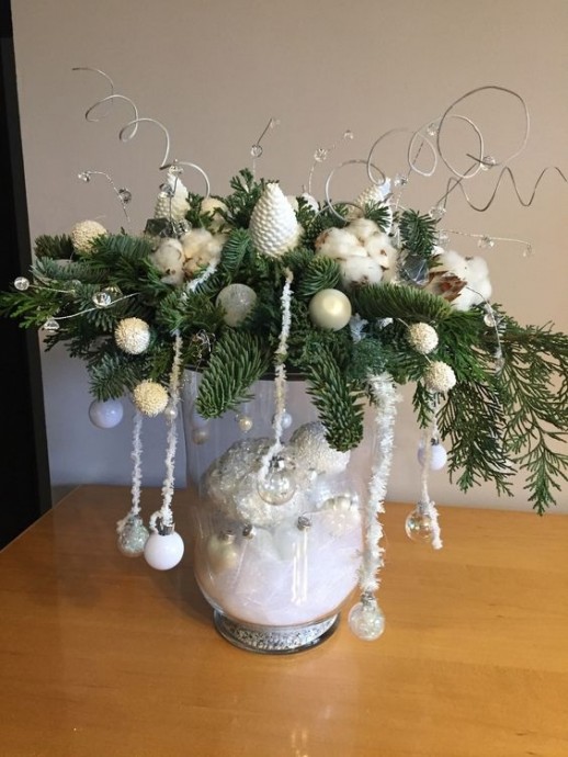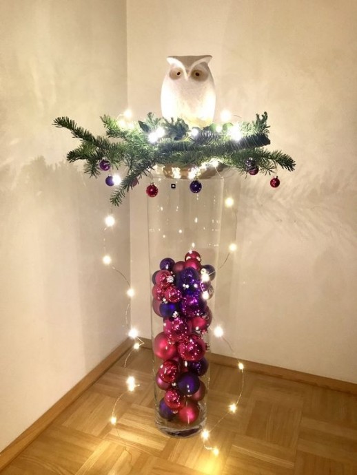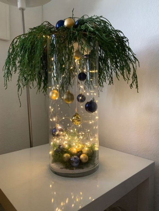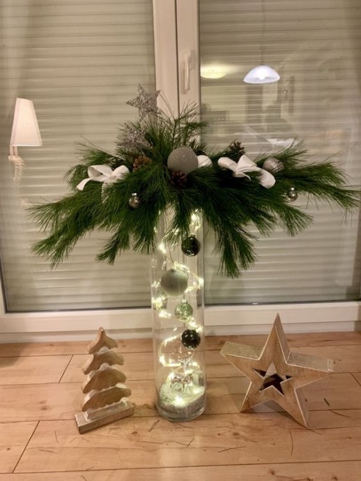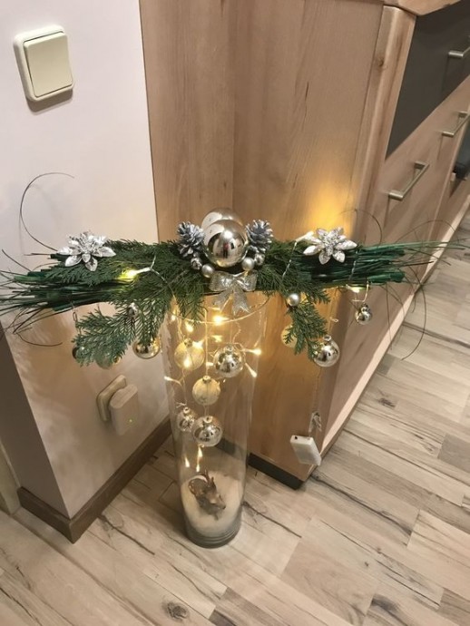 Заменить ёлку вазой с новогодним декором это значит не только создать красоту, но и облегчить уборку после нового года.
