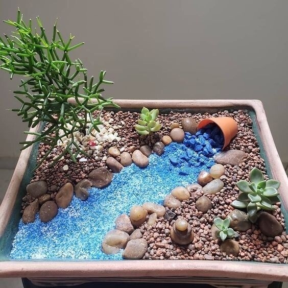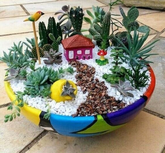 Микро-садики из медленно растущих растений и цветных камней скрасят холодную серость зимы.