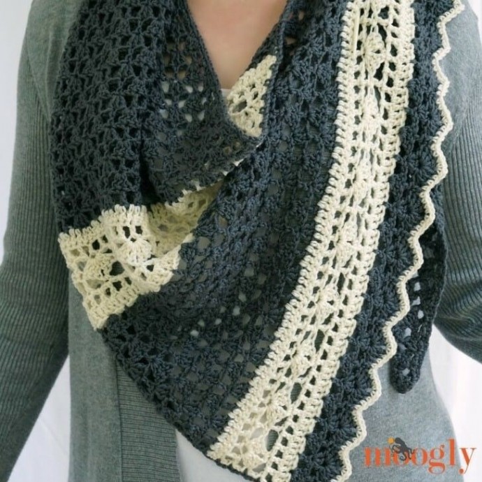Изумительной красоты бактус спицамиЭта модель шарфа-косынки или бактуса придумана дизайнером lisa Daehlin.Он оригинально будет смотреться поверх свитера,куртки или плаща,с заколкой...