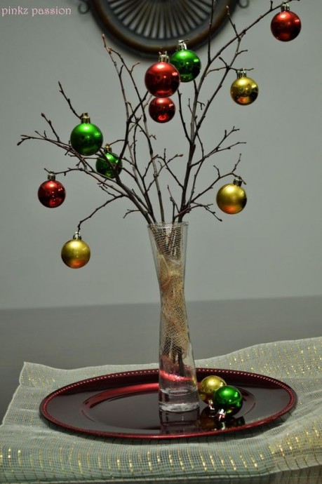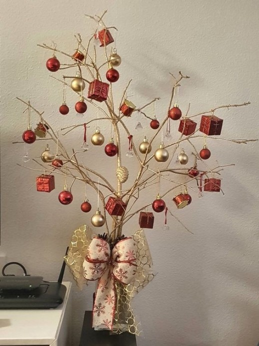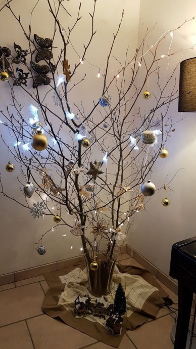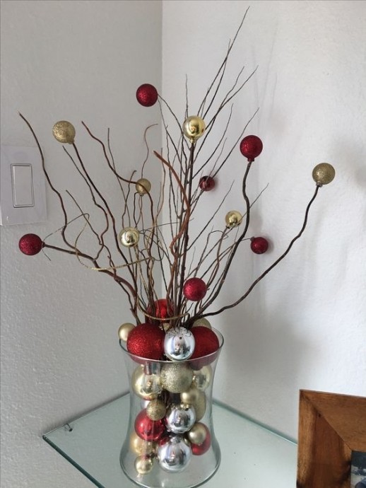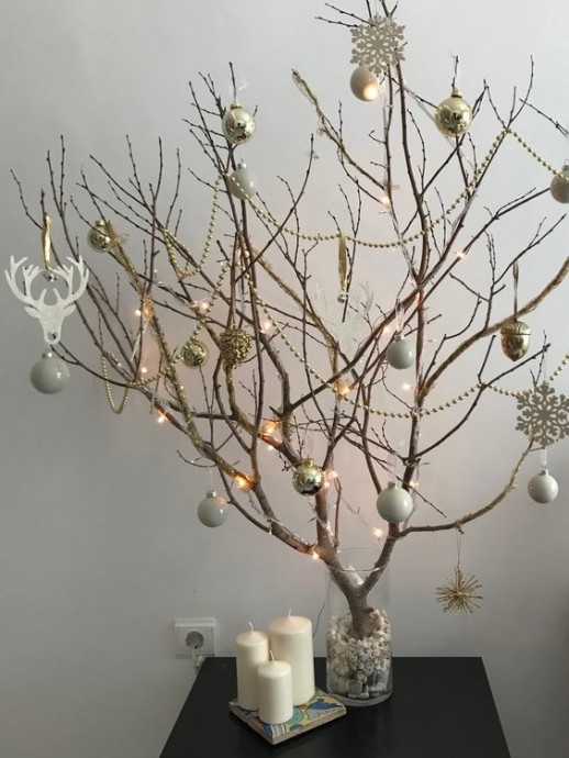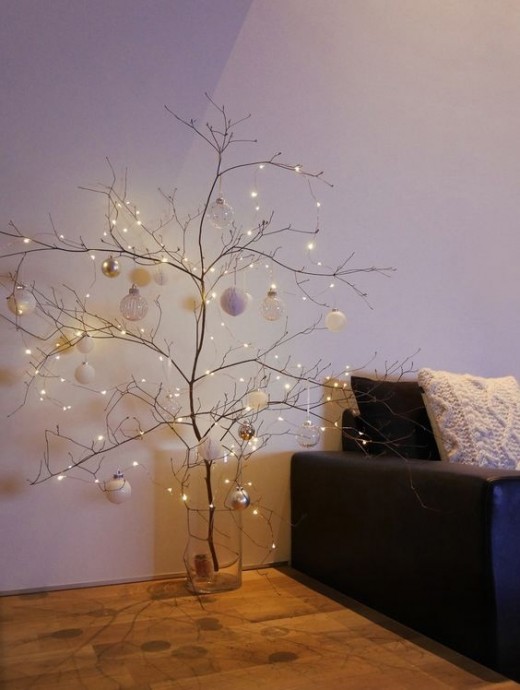 Наряжать не обязательно ёлку - можно создать красоту, украшая голые веточки.