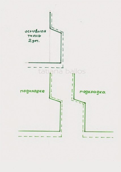 Соединить средний шов подкладки, верхний срез шлицы, надсекая уголки , где необходимо .