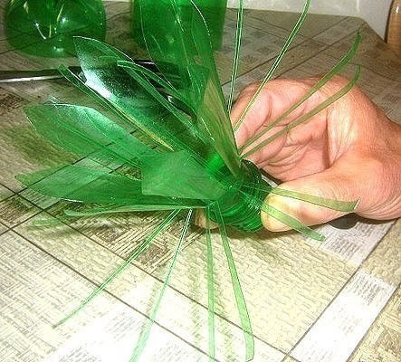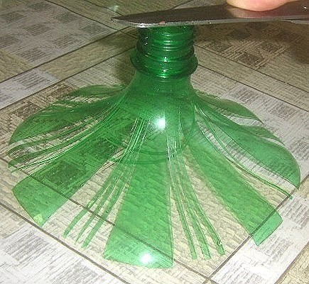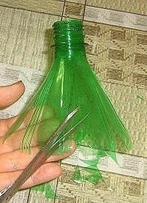 Такой цветок создается из пластиковой бутылки для дачного декора.