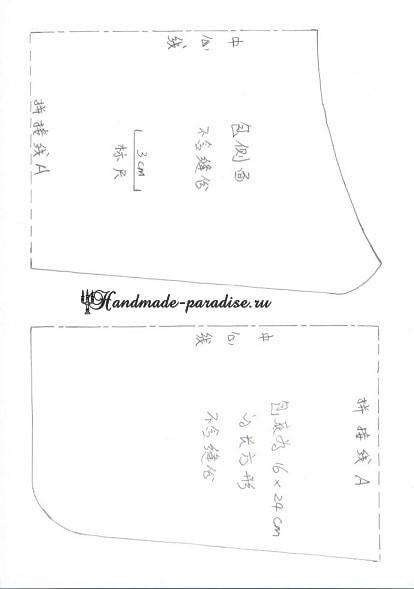 Обратите внимание: выкройки следует увеличить почти в 3 раза, на шаблонах есть отметка, которая при увеличении должна равняться 3-м сантиметрам