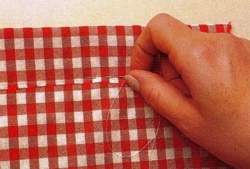 Ткань в маленькую клетку красного и белого цвета 1,70 м шириной 1,50 м;