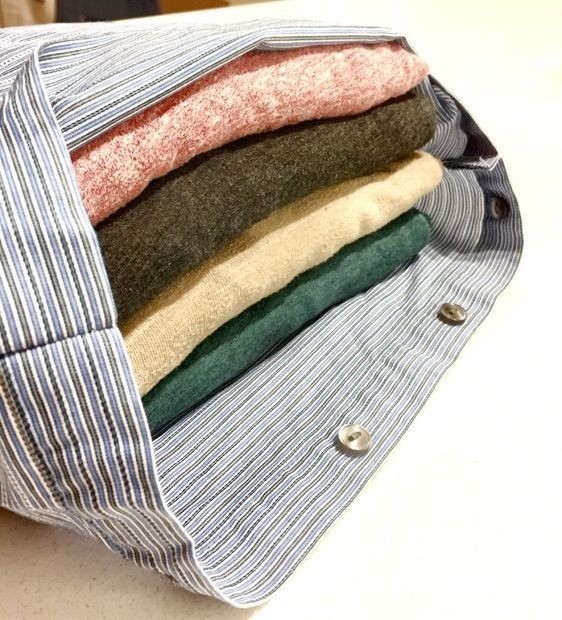 А всю остальную рубашку еще можно использовать, переделав во что-то другое.