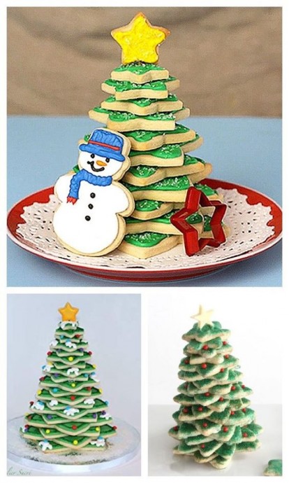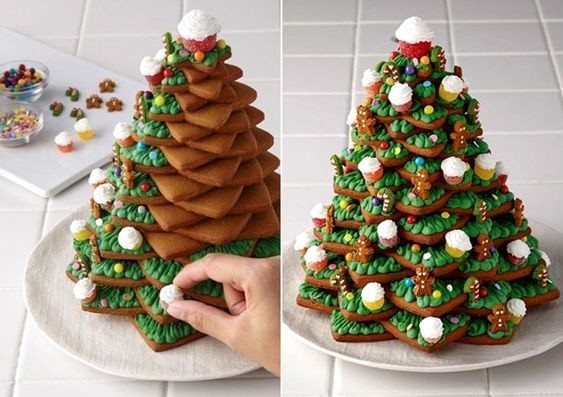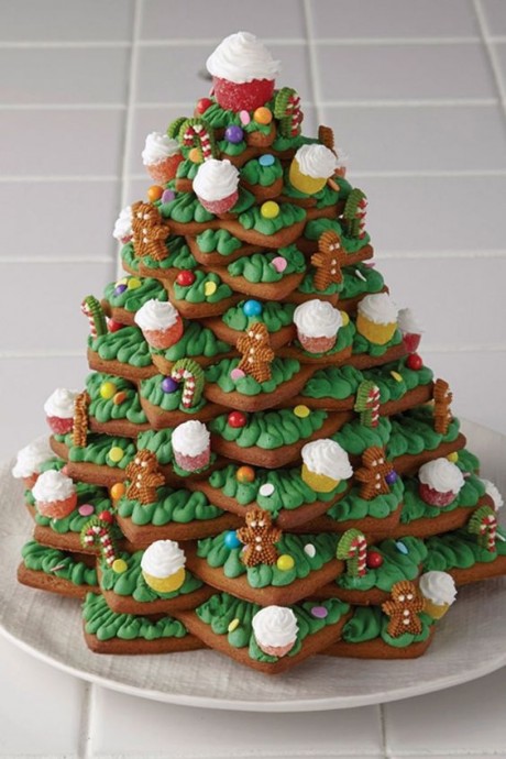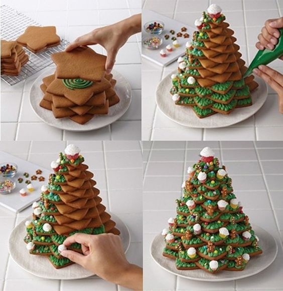 Соберите елочку не на клее, а на вкусном застывающем креме - и будет вам счастье.