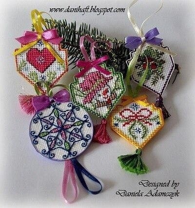 Подвески на ёлку с вышивкой