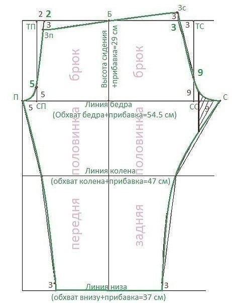 Выкройка пижамных брюкВыкройка строится на основе индивидуальных мерок.