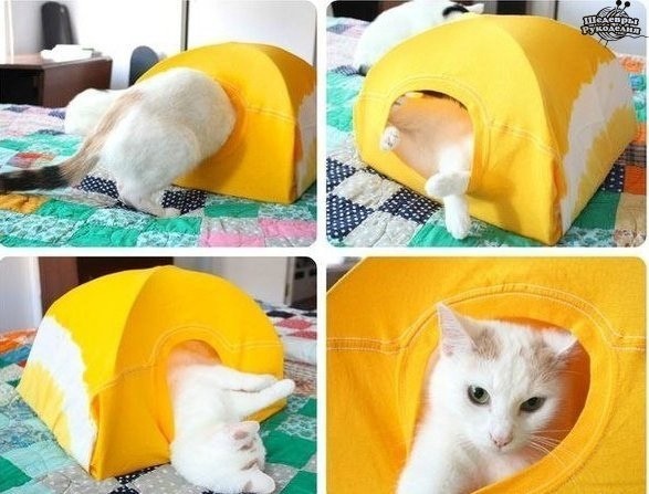 Кошкин дом можно сделать за 15 минут из старой футболки.