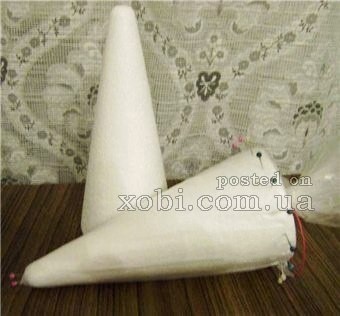 Сворачиваем лист картона в конус. Излишки бумаги отрезаем. Одеваем сверху полиэтиленовый пакет, чтобы нитки не прилипли к картону.