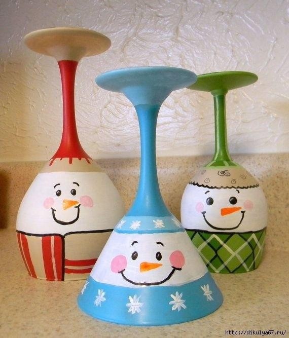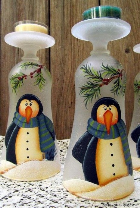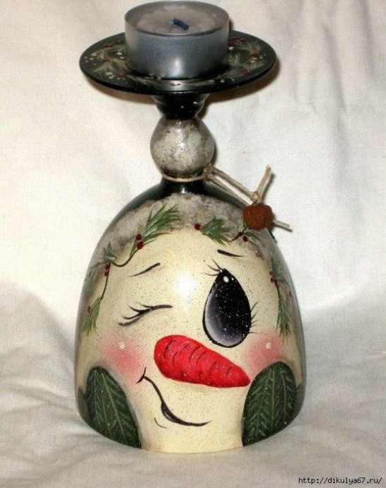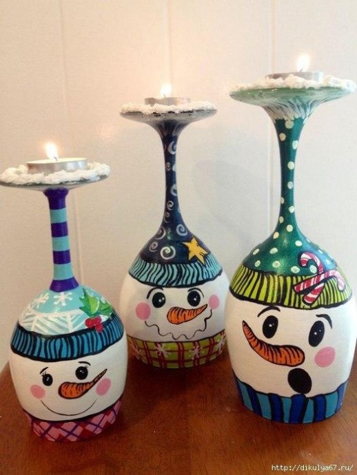 Вооружитесь красками по стеклу, чтобы превратить фужеры в подсвечники.