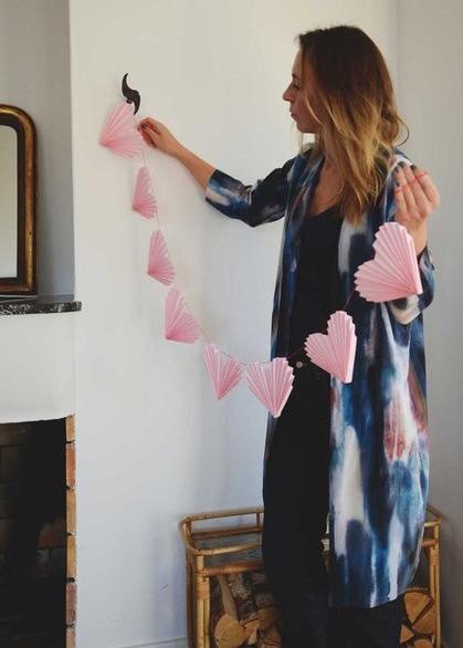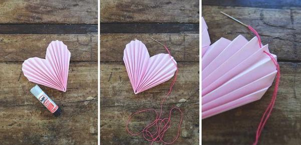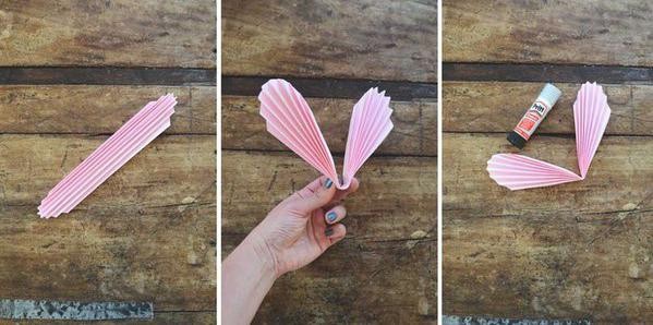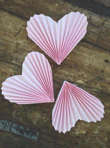 Сердечки можно сделать из розовой бумаги гармошкой.
