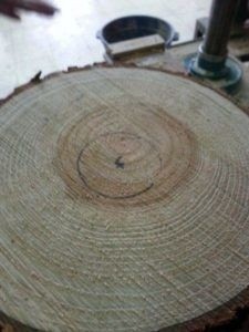 Стол из спилов своими рукамиИз пород твердых деревьев такой стол будет долговечнее.