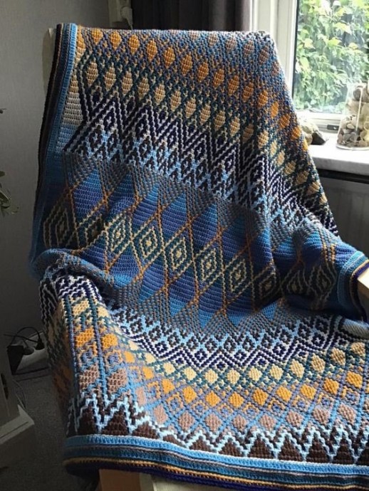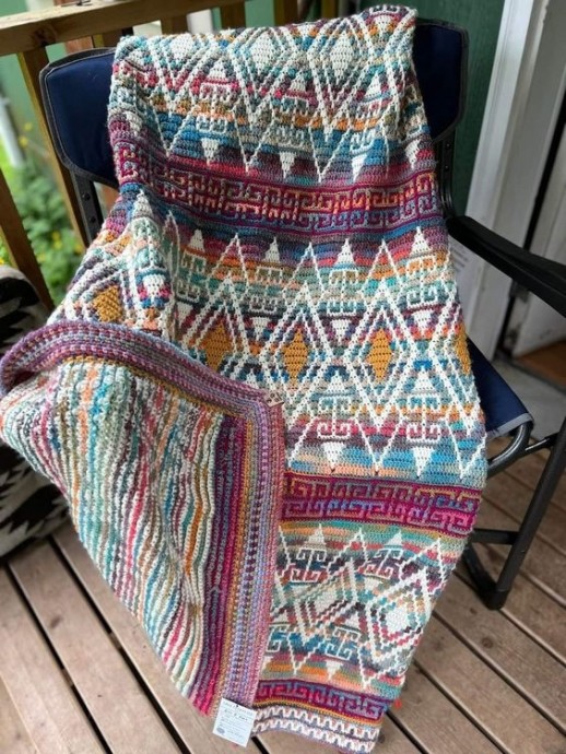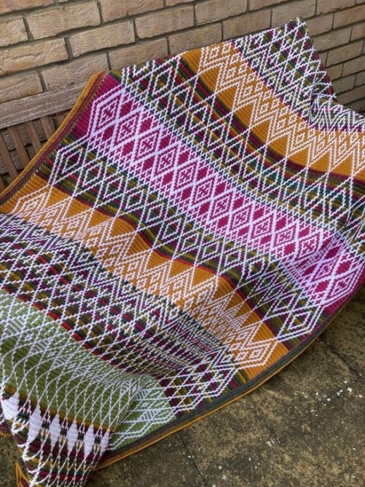 Мозаика крючком (Overlay mosaic crochet) – разновидность ленивого жаккарда, которая позволяет получать плотное орнаментальное полотно с аккуратной изнанкой.