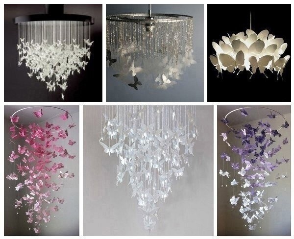 Абажур с бабочкамиБабочек вырезаем из полупрозрачного пластика подходящего цвета.